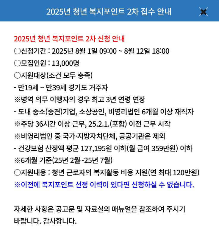 2025 청년복지포인트 신청 방법(2차신청)·자격 총정리 (혜택까지 한눈에)