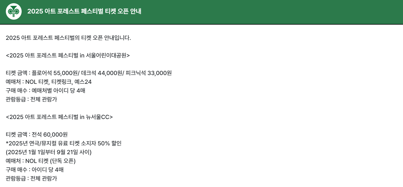 🎟 아트포레스트 티켓 예매 일정