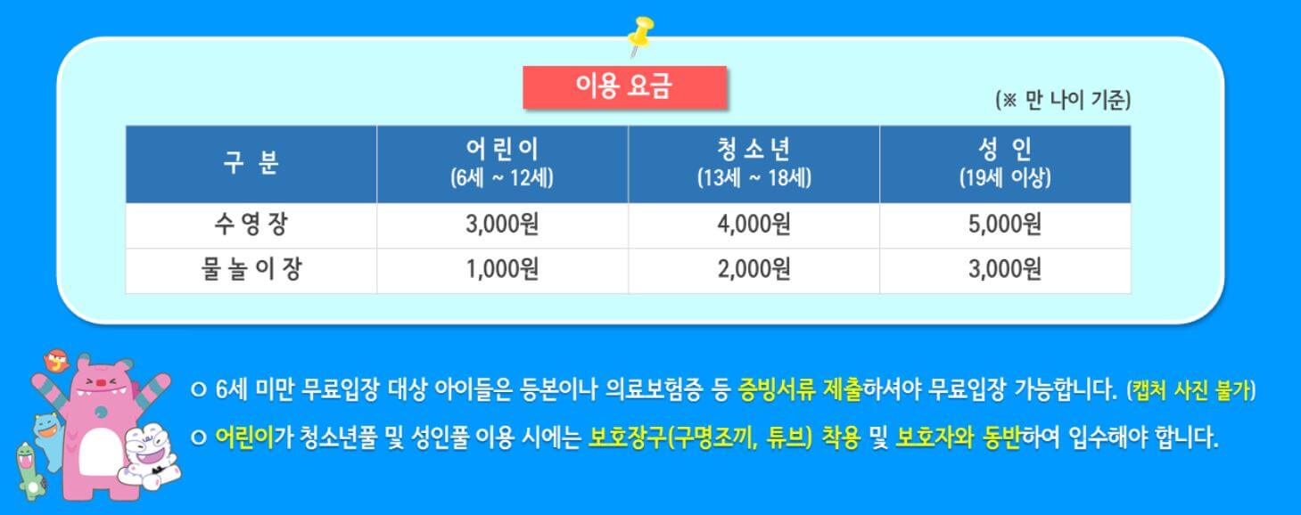 - 어린이의 성인풀 입장 시 보호자 동반 및 보호장비 착용 필수
