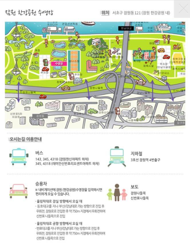 - 운영 장소: 뚝섬, 여의도, 잠원, 난지